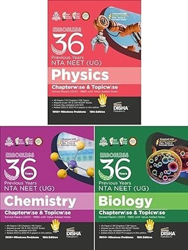 36 Years NEET Chapterwise + Topicwise Solved Papers PHYSICS, CHEMISTRY & BIOLOGY with Value Added Notes is the thoroughly revised & updated 18th edition and it contains the past year papers of NEET 2023 to 1988 distributed in 29, 30 & 38 Chapters respectively.